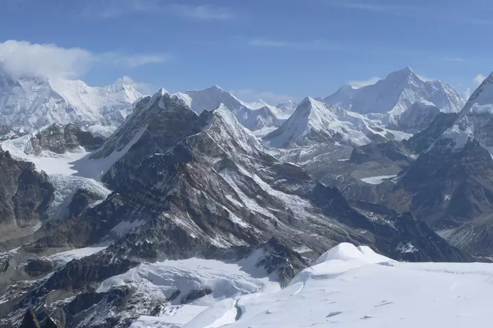 El Mera Peak se encuentra en Nepal en el Valle del Hinku a pocos kilómetros del Everest, Cho Oyu y Ama Dablam.