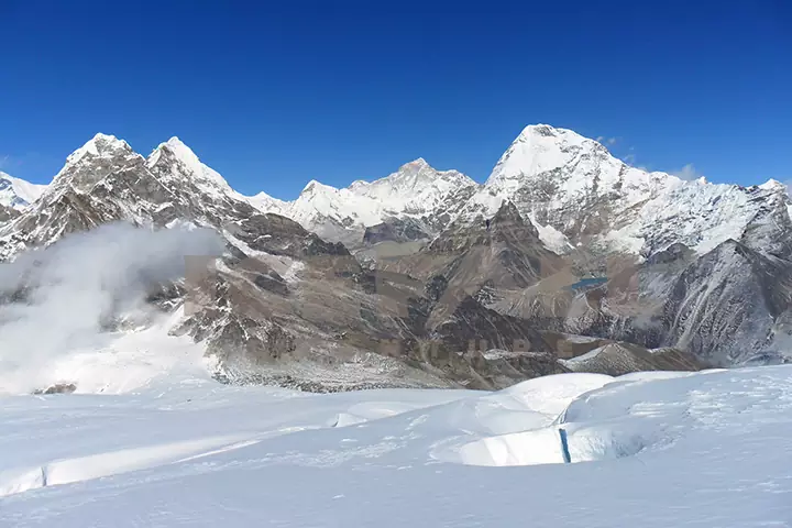 Esta área está razonablemente cubierta por un glaciar de hielo. Ofrece unas vistas asombrosas del Everest, otros picos panorámicos de Baruntse, Makalu, Kusum Kanguru etc. Además, quedará abrumado por las maravillosas vistas que nos cautivarán para siempre.