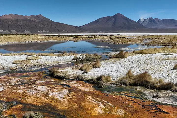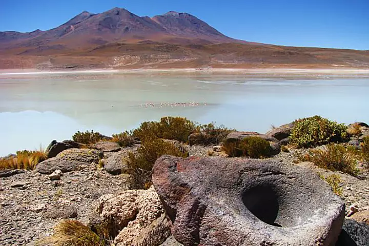 Visitaremos los geyser del Sol de la Mañana y una variedad de salares, humedales y lagunas. La Laguna Colorada es el lugar perfecto para avistar flamencos en su hábitat natural, y también donde almorzamos disfrutando de la intensa combinación de colores del Altiplano.