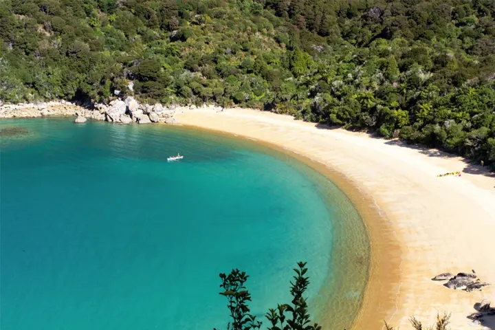 Saldremos temprano hacia el espectacular parque nacional Abel Tasman, donde recomendamos alquilar un kayak de mar y recorrer sus cristalinas aguas color turquesa haciendo desembarcos en las distintas playas de arena dorada. La ausencia de viento lo convierte en el lugar ideal para los amantes del kayak de todos los niveles, al tiempo que brinda la oportunidad de ver la fauna marina local, como multitud de aves, focas y orcas. Otra opción es recorrerlo en lancha o en water-taxi. A continuación nos dirigiremos a la playa de Kaiteriteri para el alojamiento.